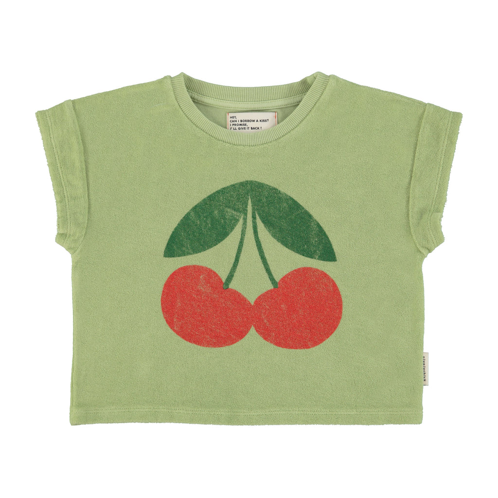 T-Shirt – light olive w/ cherry print